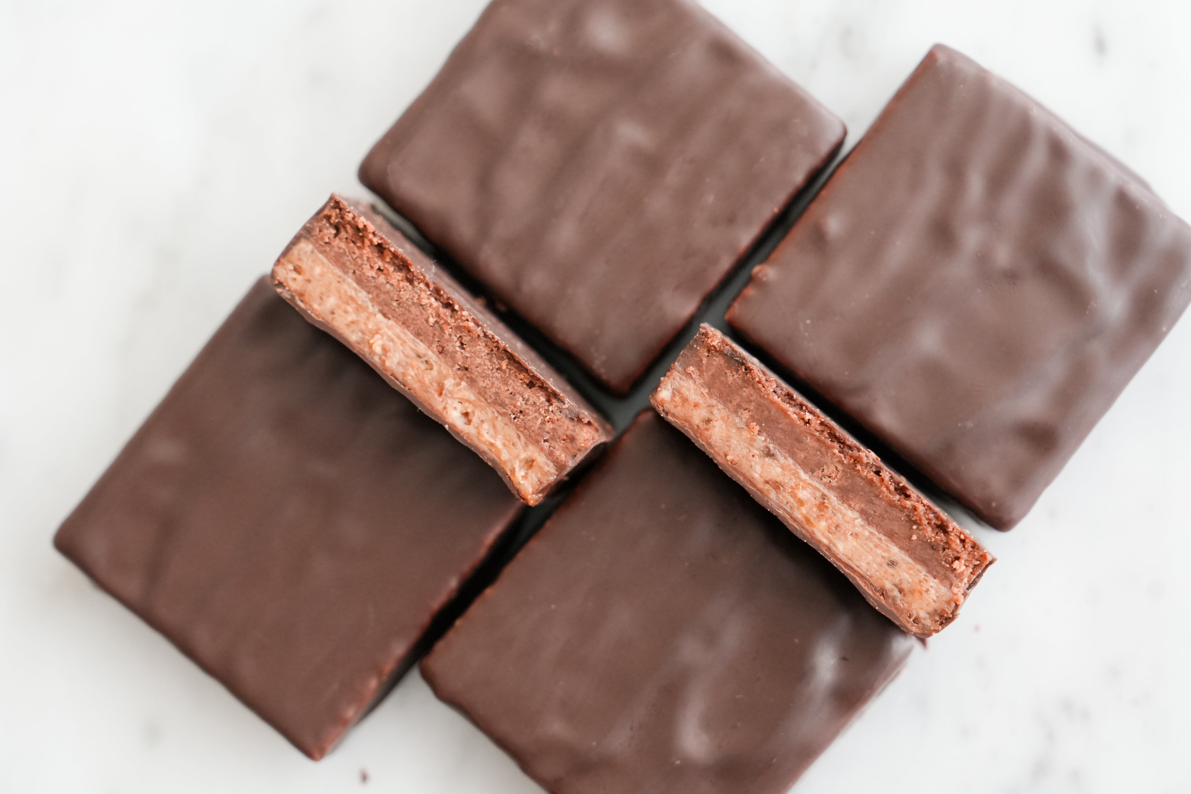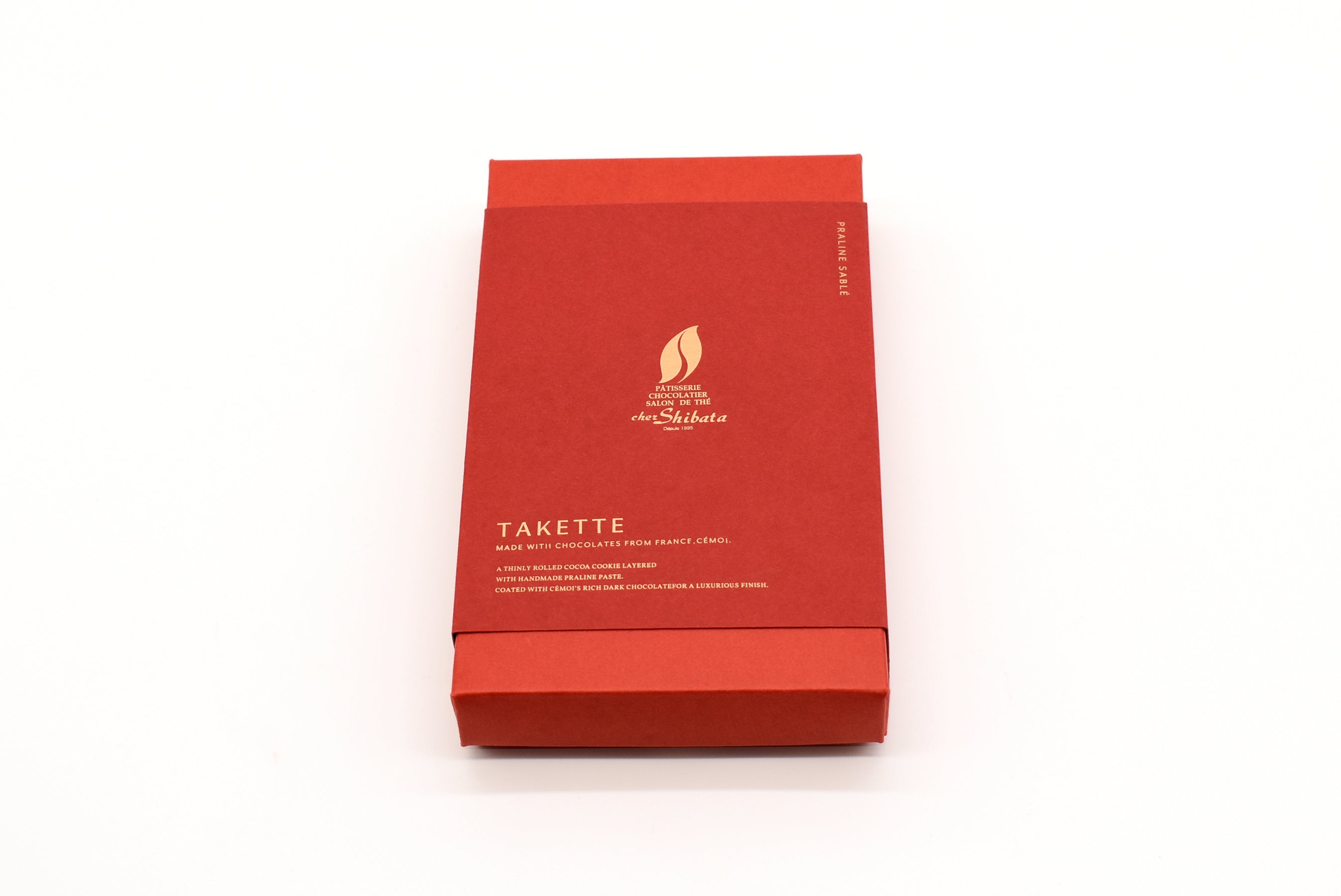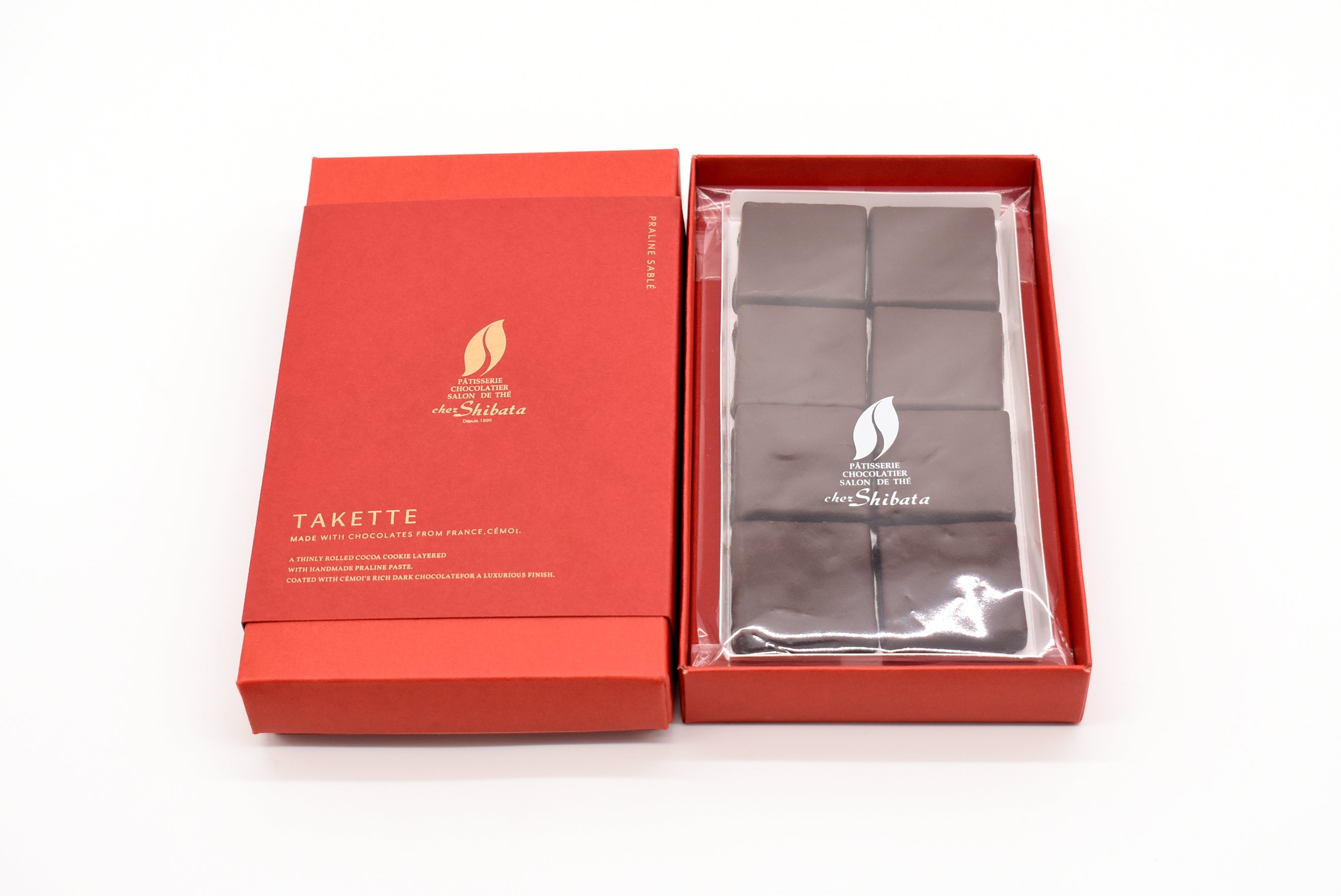 薄く伸ばしたサブレショコラと自家製のプラリネを2層に重ねました。ひと口サイズにカットし、セモア社のカカオ分58.5%チョコレートをコーティングして贅沢に仕上げました。サクサク、ジャリジャリの食感が楽しいショコラです。