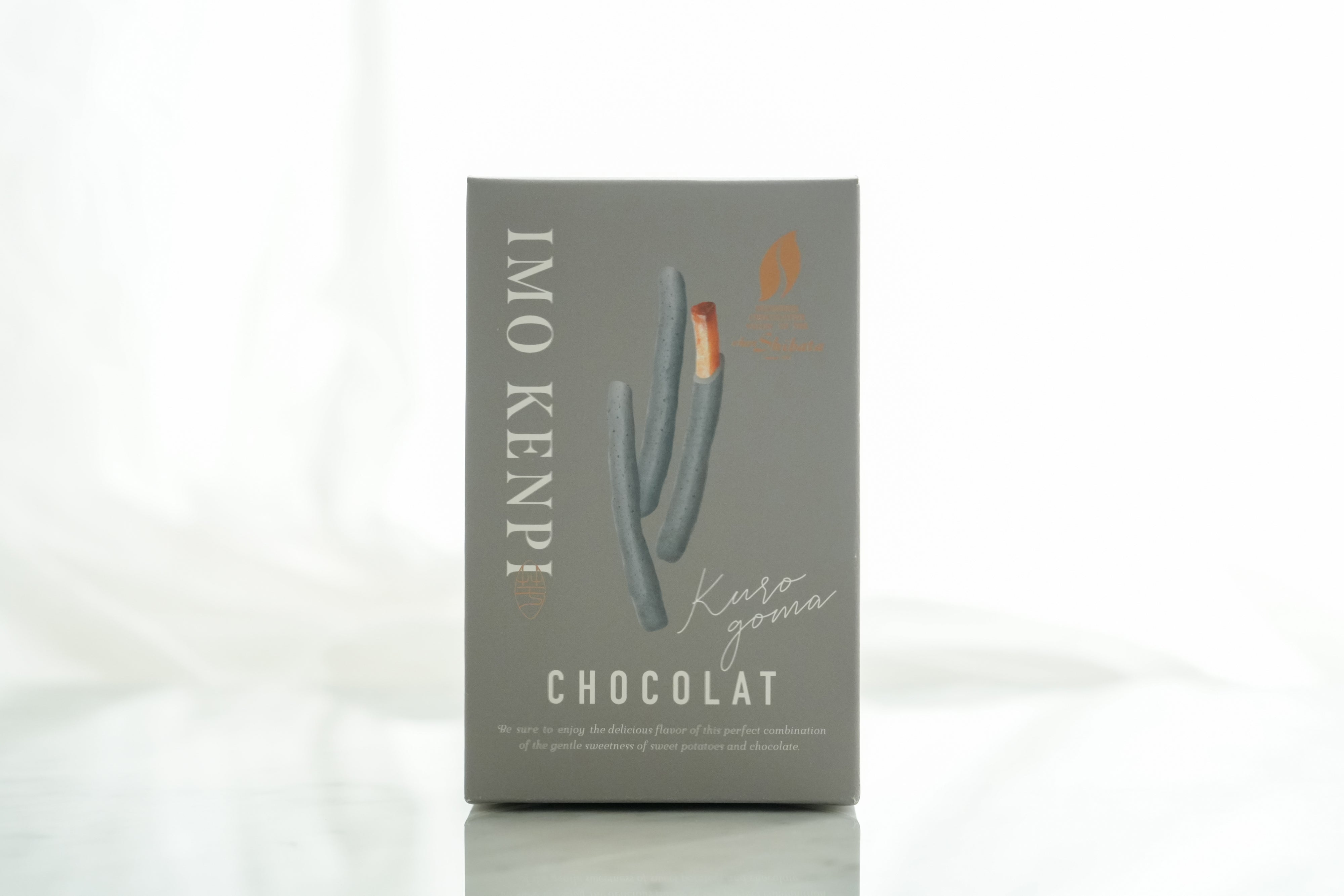 素揚げにした芋けんぴをくちどけの良いクーベルチュールチョコレート(ホワイト)でコーティングしました。お芋は、優しい甘さが特長の黄金千貫を使用しました。芋けんぴのカリッとした食感と、芳ばしくコクのある黒ゴマが相性抜群です。