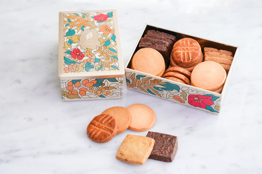 ご自宅でのティータイムにはもちろんプレゼントにも喜ばれるクッキーの詰め合わせ。すべての素材にこだわり、たっぷりとバターを使用して一つ一つ慎重に焼き上げました。幸せなひとときをお楽しみください。