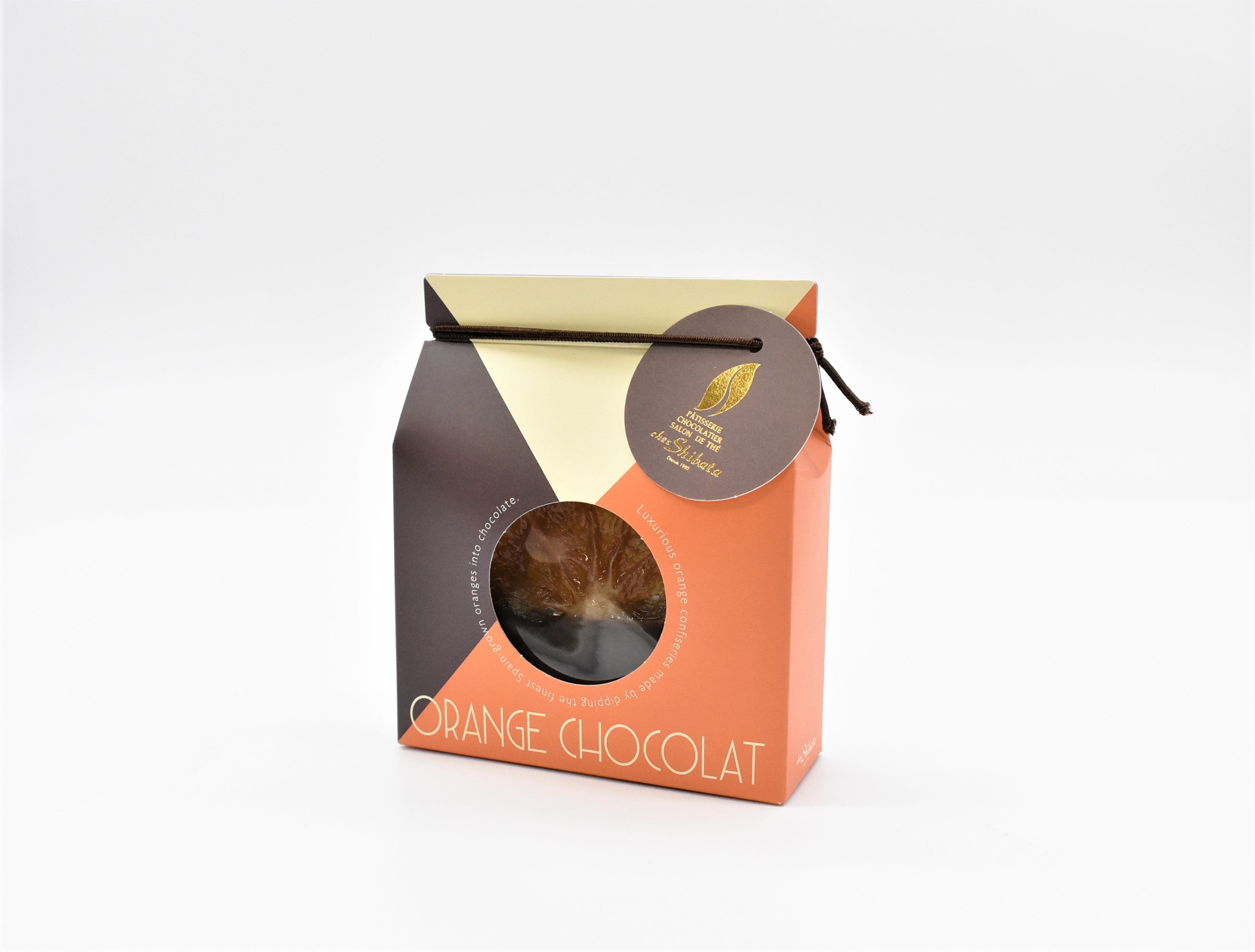スペイン産の最高級オレンジコンフィにカカオ分58%のダークショコラをディップした贅沢なオレンジコンフィズリー。